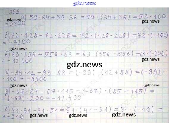 ГДЗ по Математике за 6 класс Никольский, Потапов Учебник МГУ - школе - Глава 2. Целые числа 359