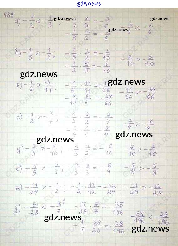 ГДЗ по Математике за 6 класс Никольский, Потапов Учебник МГУ - школе - Глава 3. Рациональные числа 488
