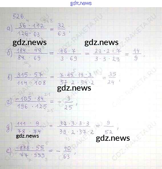 ГДЗ по Математике за 6 класс Никольский, Потапов Учебник МГУ - школе - Глава 3. Рациональные числа 526