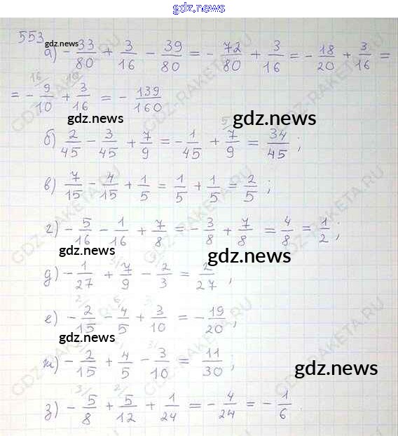 ГДЗ по Математике за 6 класс Никольский, Потапов Учебник МГУ - школе - Глава 3. Рациональные числа 553