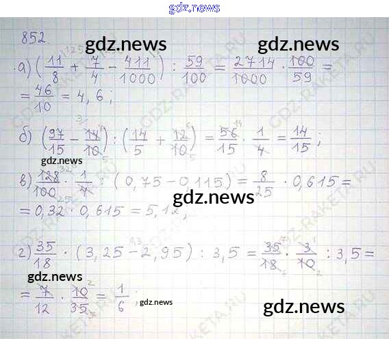 ГДЗ по Математике за 6 класс Никольский, Потапов Учебник МГУ - школе - Глава 4. Десятичные дроби 852
