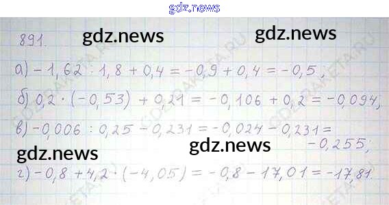 ГДЗ по Математике за 6 класс Никольский, Потапов Учебник МГУ - школе - Глава 4. Десятичные дроби 891