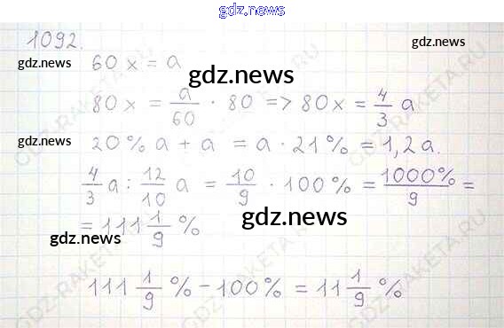 Как эффективно готовиться к домашним заданиям по Математике за 6 класс: лучшие стратегии и советы на gdz.news. Здесь подготовлен Учебник Никольский, Потапов, Решетников, Шевкин МГУ - школе - Глава 5. Обыкновенные и десятичные дроби 1092 и готовые ответы к ним. Сверяй домашку и получай отличные оценки!