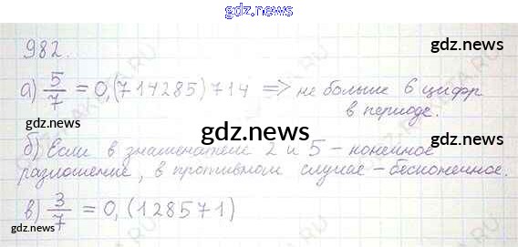 Как эффективно готовиться к домашним заданиям по Математике за 6 класс: лучшие стратегии и советы на gdz.news. Здесь подготовлен Учебник Никольский, Потапов, Решетников, Шевкин МГУ - школе - Глава 5. Обыкновенные и десятичные дроби 982 и готовые ответы к ним. Сверяй домашку и получай отличные оценки!