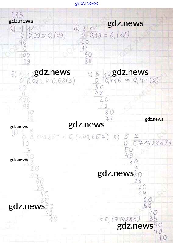 ГДЗ по Математике за 6 класс Никольский, Потапов Учебник МГУ - школе - Глава 5. Обыкновенные и десятичные дроби 983