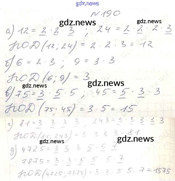 ГДЗ по Математике за 6 класс Виленкин, Жохов Учебник - §1. Делимость чисел 190