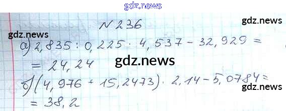 Как эффективно готовиться к домашним заданиям по Математике за 6 класс: лучшие стратегии и советы на gdz.news. Здесь подготовлен Учебник Виленкин, Жохов, Чесноков, Шварцбурд - §2. Сложение и вычитание дробей с разными знаменателями 236 и готовые ответы к ним. Сверяй домашку и получай отличные оценки!