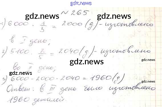 Как эффективно готовиться к домашним заданиям по Математике за 6 класс: лучшие стратегии и советы на gdz.news. Здесь подготовлен Учебник Виленкин, Жохов, Чесноков, Шварцбурд - §2. Сложение и вычитание дробей с разными знаменателями 265 и готовые ответы к ним. Сверяй домашку и получай отличные оценки!