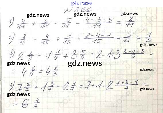 Как эффективно готовиться к домашним заданиям по Математике за 6 класс: лучшие стратегии и советы на gdz.news. Здесь подготовлен Учебник Виленкин, Жохов, Чесноков, Шварцбурд - §2. Сложение и вычитание дробей с разными знаменателями 266 и готовые ответы к ним. Сверяй домашку и получай отличные оценки!