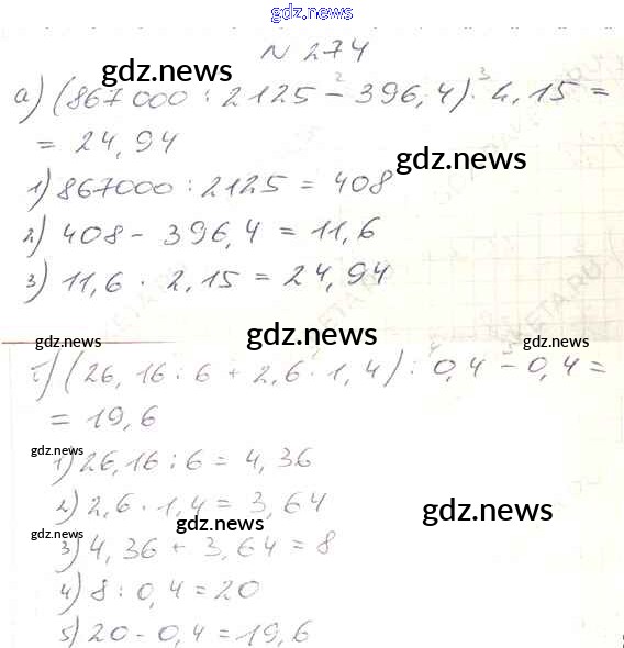 Как эффективно готовиться к домашним заданиям по Математике за 6 класс: лучшие стратегии и советы на gdz.news. Здесь подготовлен Учебник Виленкин, Жохов, Чесноков, Шварцбурд - §2. Сложение и вычитание дробей с разными знаменателями 274 и готовые ответы к ним. Сверяй домашку и получай отличные оценки!