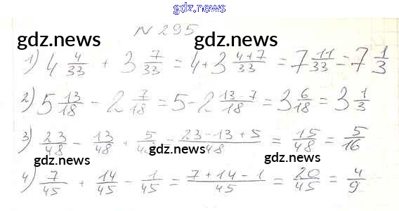 Как эффективно готовиться к домашним заданиям по Математике за 6 класс: лучшие стратегии и советы на gdz.news. Здесь подготовлен Учебник Виленкин, Жохов, Чесноков, Шварцбурд - §2. Сложение и вычитание дробей с разными знаменателями 295 и готовые ответы к ним. Сверяй домашку и получай отличные оценки!