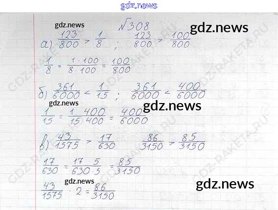 Как эффективно готовиться к домашним заданиям по Математике за 6 класс: лучшие стратегии и советы на gdz.news. Здесь подготовлен Учебник Виленкин, Жохов, Чесноков, Шварцбурд - §2. Сложение и вычитание дробей с разными знаменателями 308 и готовые ответы к ним. Сверяй домашку и получай отличные оценки!