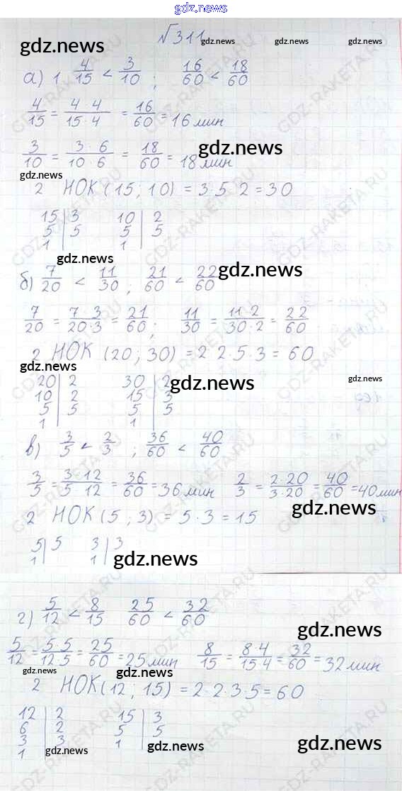 Как эффективно готовиться к домашним заданиям по Математике за 6 класс: лучшие стратегии и советы на gdz.news. Здесь подготовлен Учебник Виленкин, Жохов, Чесноков, Шварцбурд - §2. Сложение и вычитание дробей с разными знаменателями 311 и готовые ответы к ним. Сверяй домашку и получай отличные оценки!