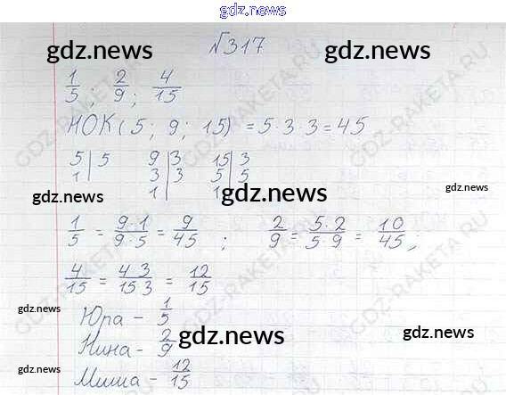 Как эффективно готовиться к домашним заданиям по Математике за 6 класс: лучшие стратегии и советы на gdz.news. Здесь подготовлен Учебник Виленкин, Жохов, Чесноков, Шварцбурд - §2. Сложение и вычитание дробей с разными знаменателями 317 и готовые ответы к ним. Сверяй домашку и получай отличные оценки!