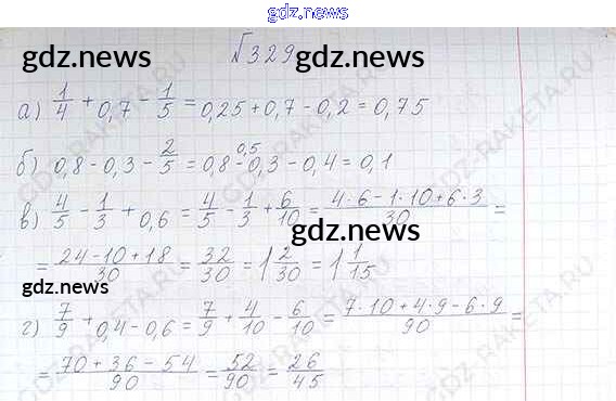 Как эффективно готовиться к домашним заданиям по Математике за 6 класс: лучшие стратегии и советы на gdz.news. Здесь подготовлен Учебник Виленкин, Жохов, Чесноков, Шварцбурд - §2. Сложение и вычитание дробей с разными знаменателями 329 и готовые ответы к ним. Сверяй домашку и получай отличные оценки!