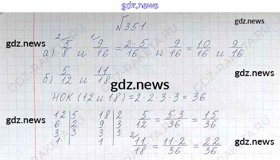 Как эффективно готовиться к домашним заданиям по Математике за 6 класс: лучшие стратегии и советы на gdz.news. Здесь подготовлен Учебник Виленкин, Жохов, Чесноков, Шварцбурд - §2. Сложение и вычитание дробей с разными знаменателями 351 и готовые ответы к ним. Сверяй домашку и получай отличные оценки!