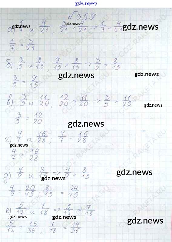 Как эффективно готовиться к домашним заданиям по Математике за 6 класс: лучшие стратегии и советы на gdz.news. Здесь подготовлен Учебник Виленкин, Жохов, Чесноков, Шварцбурд - §2. Сложение и вычитание дробей с разными знаменателями 359 и готовые ответы к ним. Сверяй домашку и получай отличные оценки!