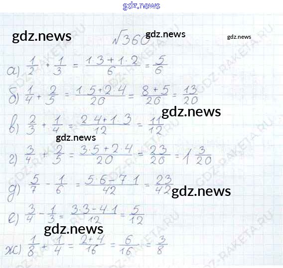 Как эффективно готовиться к домашним заданиям по Математике за 6 класс: лучшие стратегии и советы на gdz.news. Здесь подготовлен Учебник Виленкин, Жохов, Чесноков, Шварцбурд - §2. Сложение и вычитание дробей с разными знаменателями 360 и готовые ответы к ним. Сверяй домашку и получай отличные оценки!