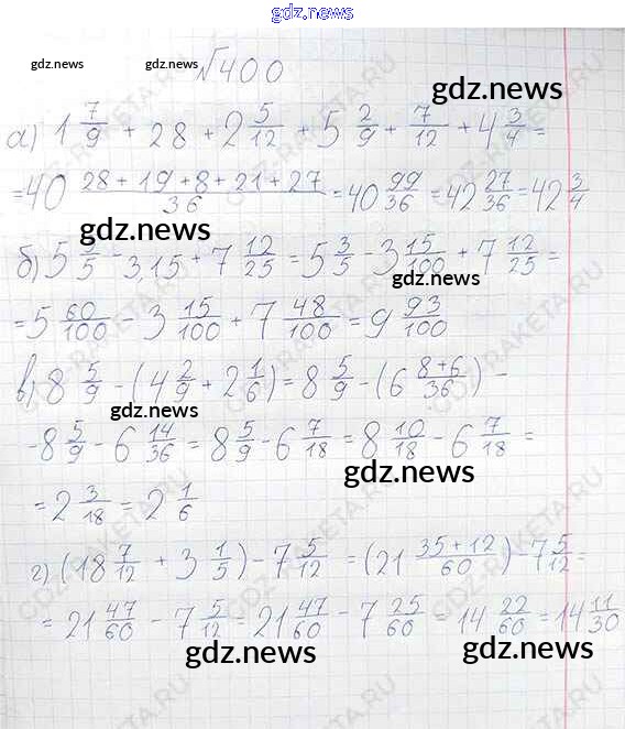 ГДЗ по Математике за 6 класс Виленкин, Жохов Учебник - §2. Сложение и вычитание дробей с разными знаменателями 400