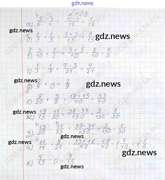 Как эффективно готовиться к домашним заданиям по Математике за 6 класс: лучшие стратегии и советы на gdz.news. Здесь подготовлен Учебник Виленкин, Жохов, Чесноков, Шварцбурд - §2. Сложение и вычитание дробей с разными знаменателями 408 и готовые ответы к ним. Сверяй домашку и получай отличные оценки!