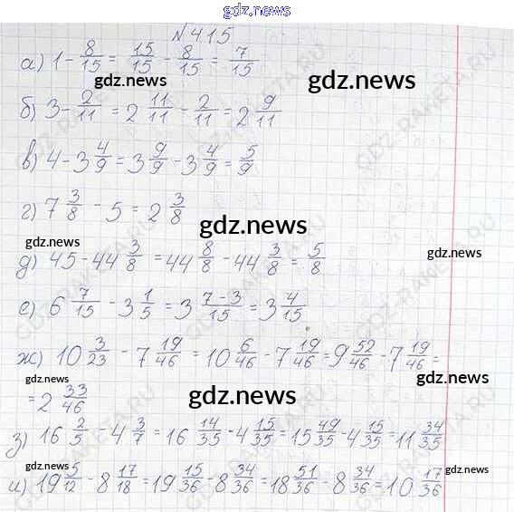 Как эффективно готовиться к домашним заданиям по Математике за 6 класс: лучшие стратегии и советы на gdz.news. Здесь подготовлен Учебник Виленкин, Жохов, Чесноков, Шварцбурд - §2. Сложение и вычитание дробей с разными знаменателями 415 и готовые ответы к ним. Сверяй домашку и получай отличные оценки!