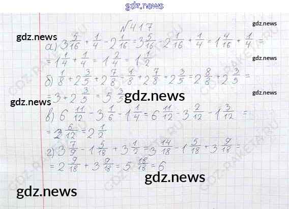 Как эффективно готовиться к домашним заданиям по Математике за 6 класс: лучшие стратегии и советы на gdz.news. Здесь подготовлен Учебник Виленкин, Жохов, Чесноков, Шварцбурд - §2. Сложение и вычитание дробей с разными знаменателями 417 и готовые ответы к ним. Сверяй домашку и получай отличные оценки!
