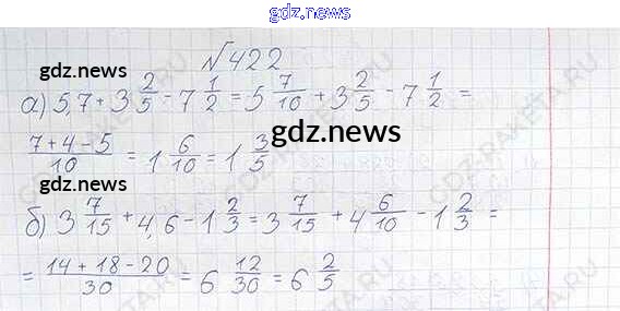 Как эффективно готовиться к домашним заданиям по Математике за 6 класс: лучшие стратегии и советы на gdz.news. Здесь подготовлен Учебник Виленкин, Жохов, Чесноков, Шварцбурд - §2. Сложение и вычитание дробей с разными знаменателями 422 и готовые ответы к ним. Сверяй домашку и получай отличные оценки!