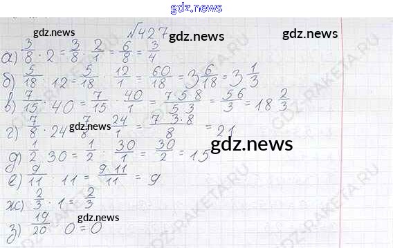 Как эффективно готовиться к домашним заданиям по Математике за 6 класс: лучшие стратегии и советы на gdz.news. Здесь подготовлен Учебник Виленкин, Жохов, Чесноков, Шварцбурд - §3. Умножение и деление обыкновенных дробей 427 и готовые ответы к ним. Сверяй домашку и получай отличные оценки!