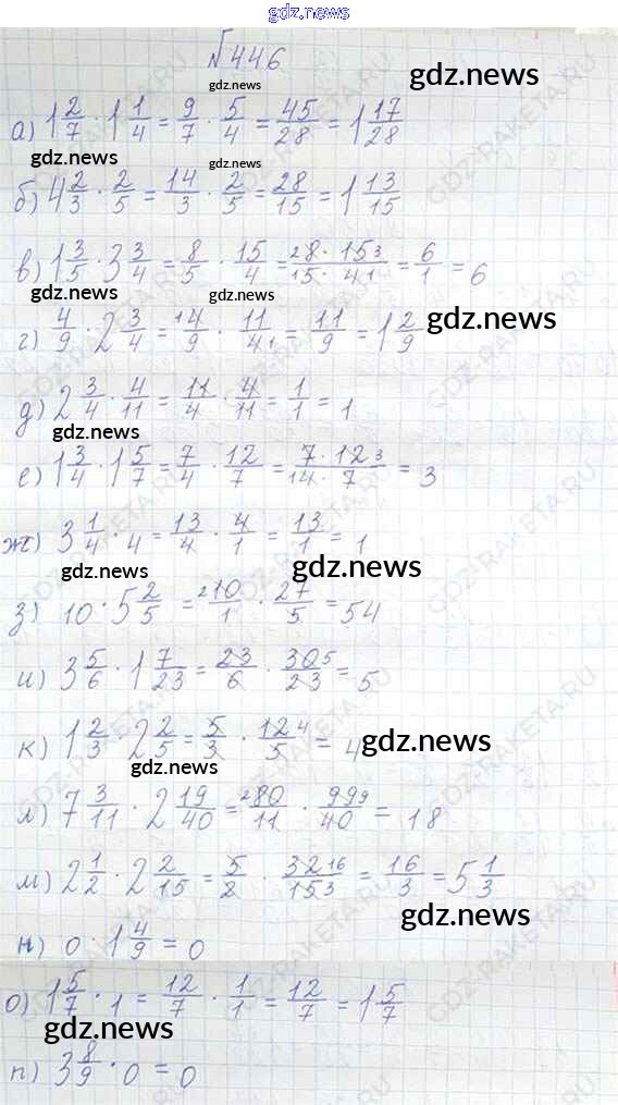 Как эффективно готовиться к домашним заданиям по Математике за 6 класс: лучшие стратегии и советы на gdz.news. Здесь подготовлен Учебник Виленкин, Жохов, Чесноков, Шварцбурд - §3. Умножение и деление обыкновенных дробей 446 и готовые ответы к ним. Сверяй домашку и получай отличные оценки!