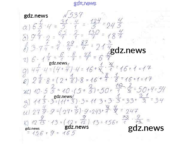 Как эффективно готовиться к домашним заданиям по Математике за 6 класс: лучшие стратегии и советы на gdz.news. Здесь подготовлен Учебник Виленкин, Жохов, Чесноков, Шварцбурд - §3. Умножение и деление обыкновенных дробей 537 и готовые ответы к ним. Сверяй домашку и получай отличные оценки!