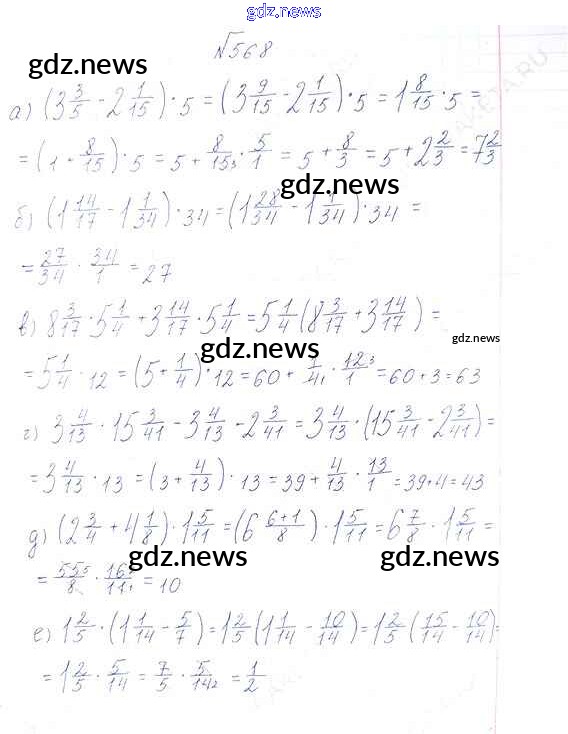 Как эффективно готовиться к домашним заданиям по Математике за 6 класс: лучшие стратегии и советы на gdz.news. Здесь подготовлен Учебник Виленкин, Жохов, Чесноков, Шварцбурд - §3. Умножение и деление обыкновенных дробей 568 и готовые ответы к ним. Сверяй домашку и получай отличные оценки!