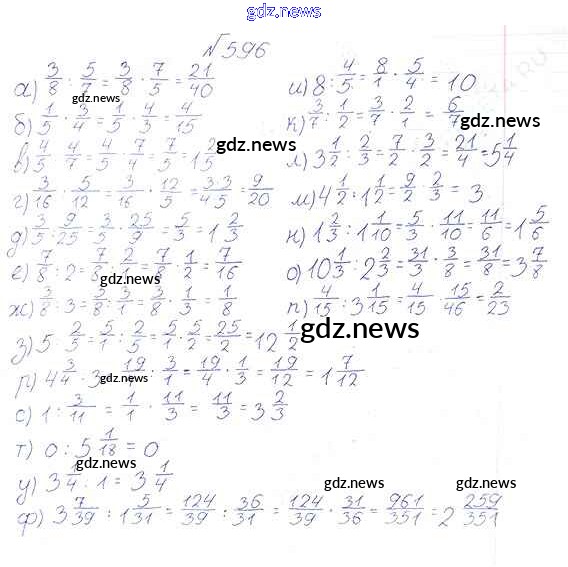 Как эффективно готовиться к домашним заданиям по Математике за 6 класс: лучшие стратегии и советы на gdz.news. Здесь подготовлен Учебник Виленкин, Жохов, Чесноков, Шварцбурд - §3. Умножение и деление обыкновенных дробей 596 и готовые ответы к ним. Сверяй домашку и получай отличные оценки!