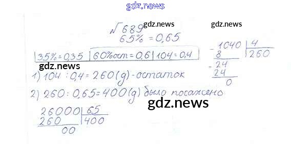 Как эффективно готовиться к домашним заданиям по Математике за 6 класс: лучшие стратегии и советы на gdz.news. Здесь подготовлен Учебник Виленкин, Жохов, Чесноков, Шварцбурд - §3. Умножение и деление обыкновенных дробей 689 и готовые ответы к ним. Сверяй домашку и получай отличные оценки!