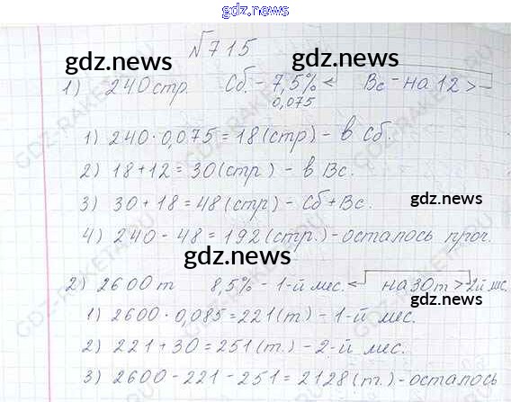 Как эффективно готовиться к домашним заданиям по Математике за 6 класс: лучшие стратегии и советы на gdz.news. Здесь подготовлен Учебник Виленкин, Жохов, Чесноков, Шварцбурд - §3. Умножение и деление обыкновенных дробей 715 и готовые ответы к ним. Сверяй домашку и получай отличные оценки!