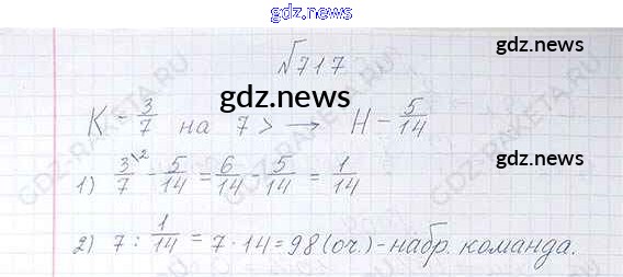 Как эффективно готовиться к домашним заданиям по Математике за 6 класс: лучшие стратегии и советы на gdz.news. Здесь подготовлен Учебник Виленкин, Жохов, Чесноков, Шварцбурд - §3. Умножение и деление обыкновенных дробей 717 и готовые ответы к ним. Сверяй домашку и получай отличные оценки!