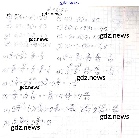 ГДЗ по Математике за 6 класс Виленкин, Жохов Учебник - §6. Сложение и вычитание положительных и отрицательных чисел 1066