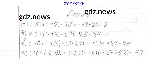 ГДЗ по Математике за 6 класс Виленкин, Жохов Учебник - §6. Сложение и вычитание положительных и отрицательных чисел 1067