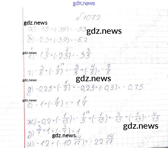 ГДЗ по Математике за 6 класс Виленкин, Жохов Учебник - §6. Сложение и вычитание положительных и отрицательных чисел 1072