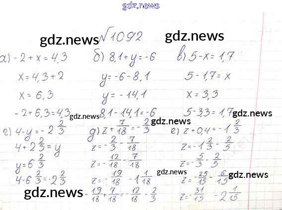 Как эффективно готовиться к домашним заданиям по Математике за 6 класс: лучшие стратегии и советы на gdz.news. Здесь подготовлен Учебник Виленкин, Жохов, Чесноков, Шварцбурд - §6. Сложение и вычитание положительных и отрицательных чисел 1092 и готовые ответы к ним. Сверяй домашку и получай отличные оценки!
