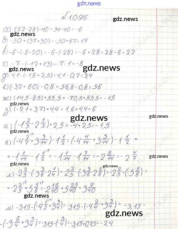 ГДЗ по Математике за 6 класс Виленкин, Жохов Учебник - §6. Сложение и вычитание положительных и отрицательных чисел 1096