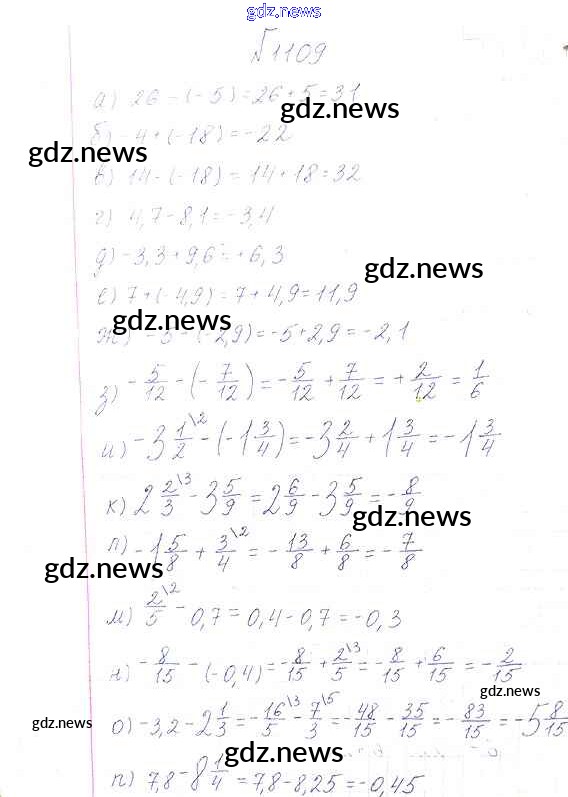 ГДЗ по Математике за 6 класс Виленкин, Жохов Учебник - §6. Сложение и вычитание положительных и отрицательных чисел 1109
