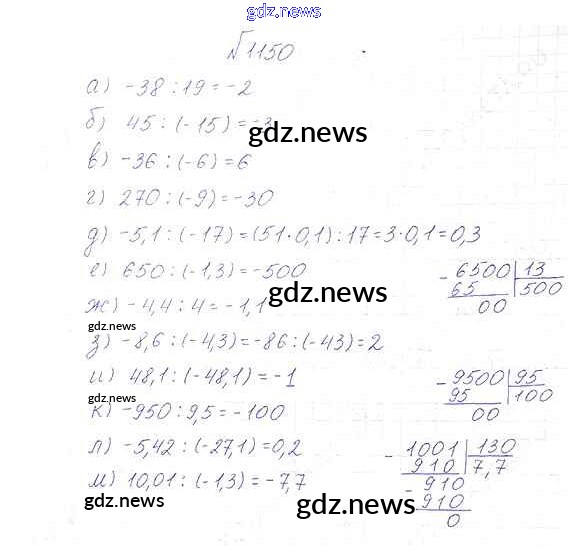 Как эффективно готовиться к домашним заданиям по Математике за 6 класс: лучшие стратегии и советы на gdz.news. Здесь подготовлен Учебник Виленкин, Жохов, Чесноков, Шварцбурд - §7. Умножение и деление положительных и отрицательных чисел 1150 и готовые ответы к ним. Сверяй домашку и получай отличные оценки!