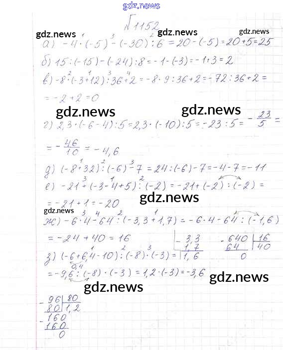 Как эффективно готовиться к домашним заданиям по Математике за 6 класс: лучшие стратегии и советы на gdz.news. Здесь подготовлен Учебник Виленкин, Жохов, Чесноков, Шварцбурд - §7. Умножение и деление положительных и отрицательных чисел 1152 и готовые ответы к ним. Сверяй домашку и получай отличные оценки!