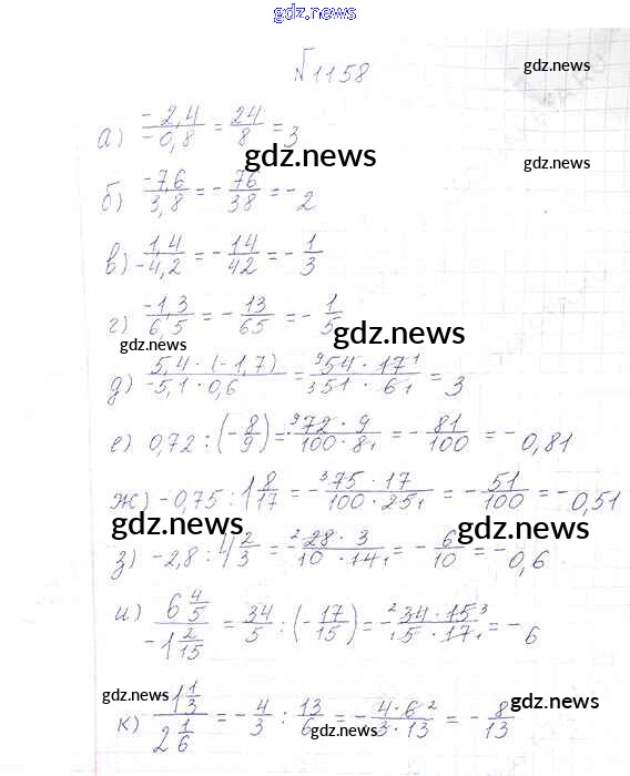 ГДЗ по Математике за 6 класс Виленкин, Жохов Учебник - §7. Умножение и деление положительных и отрицательных чисел 1158