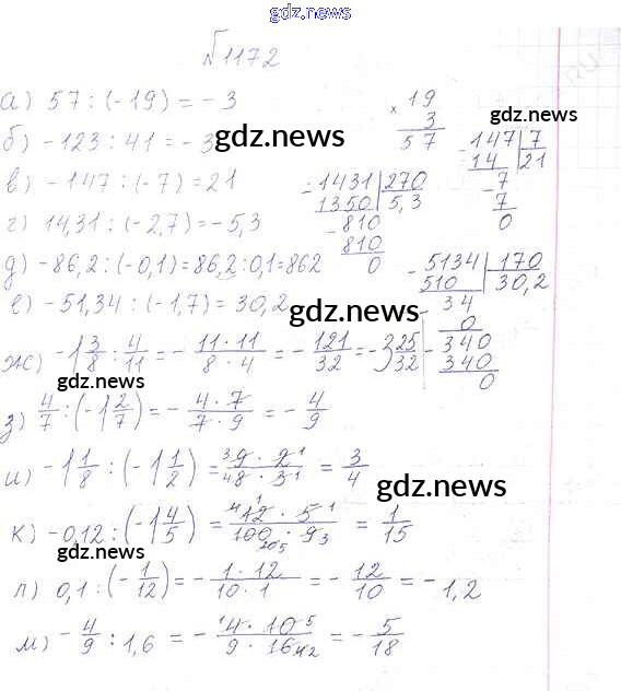 Как эффективно готовиться к домашним заданиям по Математике за 6 класс: лучшие стратегии и советы на gdz.news. Здесь подготовлен Учебник Виленкин, Жохов, Чесноков, Шварцбурд - §7. Умножение и деление положительных и отрицательных чисел 1172 и готовые ответы к ним. Сверяй домашку и получай отличные оценки!