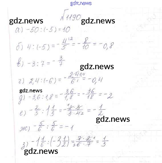 ГДЗ по Математике за 6 класс Виленкин, Жохов Учебник - §7. Умножение и деление положительных и отрицательных чисел 1190