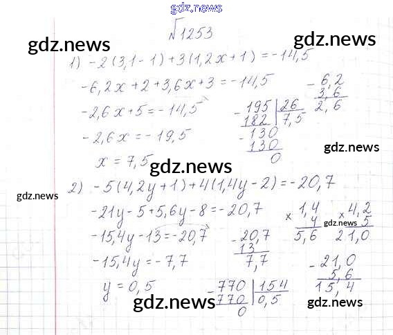 Как эффективно готовиться к домашним заданиям по Математике за 6 класс: лучшие стратегии и советы на gdz.news. Здесь подготовлен Учебник Виленкин, Жохов, Чесноков, Шварцбурд - §8. Решение уравнений 1253 и готовые ответы к ним. Сверяй домашку и получай отличные оценки!