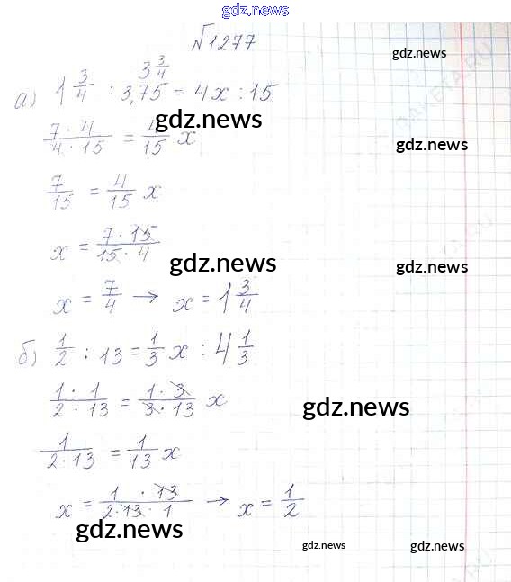 Как эффективно готовиться к домашним заданиям по Математике за 6 класс: лучшие стратегии и советы на gdz.news. Здесь подготовлен Учебник Виленкин, Жохов, Чесноков, Шварцбурд - §8. Решение уравнений 1277 и готовые ответы к ним. Сверяй домашку и получай отличные оценки!