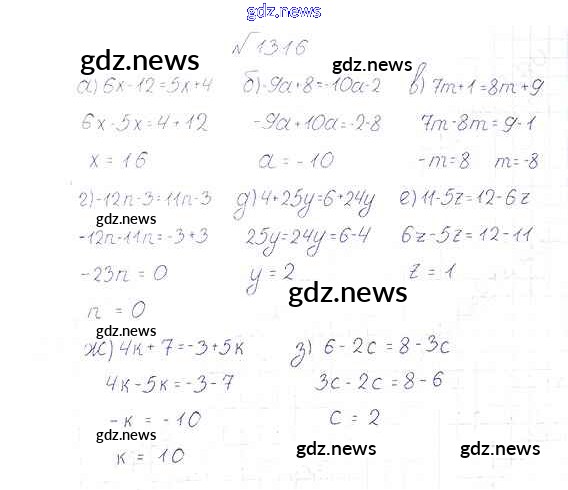 Как эффективно готовиться к домашним заданиям по Математике за 6 класс: лучшие стратегии и советы на gdz.news. Здесь подготовлен Учебник Виленкин, Жохов, Чесноков, Шварцбурд - §8. Решение уравнений 1316 и готовые ответы к ним. Сверяй домашку и получай отличные оценки!