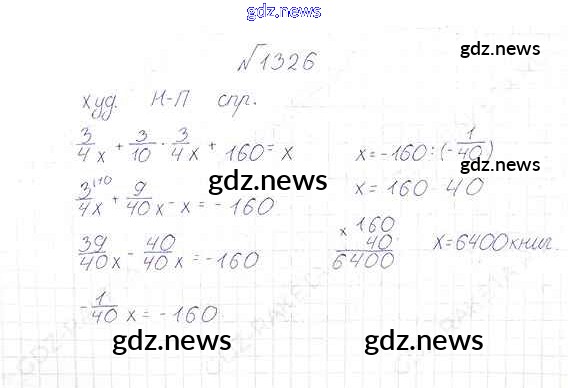 Как эффективно готовиться к домашним заданиям по Математике за 6 класс: лучшие стратегии и советы на gdz.news. Здесь подготовлен Учебник Виленкин, Жохов, Чесноков, Шварцбурд - §8. Решение уравнений 1326 и готовые ответы к ним. Сверяй домашку и получай отличные оценки!